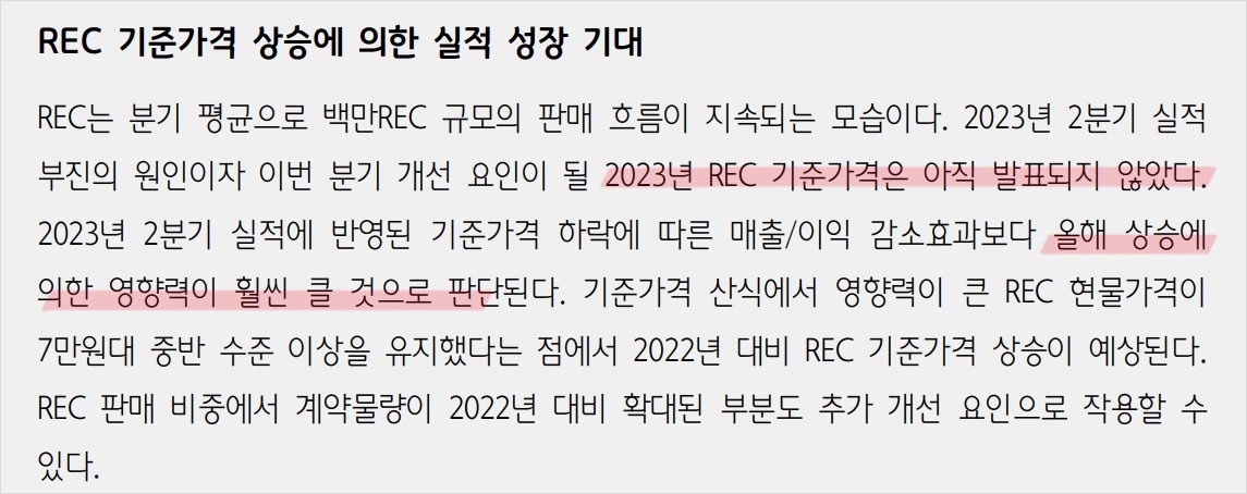 - REC 기준가격 상승에 따른 실적 개선 예상