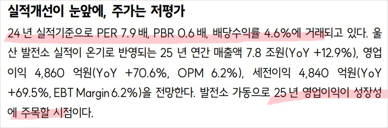 - 울산 발전소 가동으로 인한 실적 증가 기대