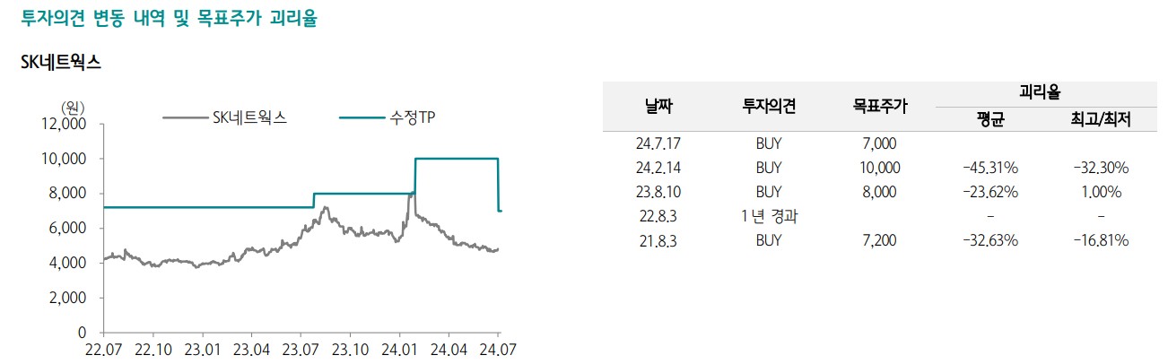 A. SK네트웍스의 목표주가는 7,000원으로 제시됨.