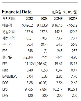 SK네트웍스는 최근 매출액과 영업이익이 감소하고 있지만, SK렌터카 매각으로 인해 재무 구조가 개선될 가능성이 있음. 부채비율은 2023년 기준 322.59%로 높지만, 매각 대금으로 차입금을 상환하면서 안정화될 전망. 또한, PER은 19.67배로 높은 편이며, PBR은 0.47배로 양호함.