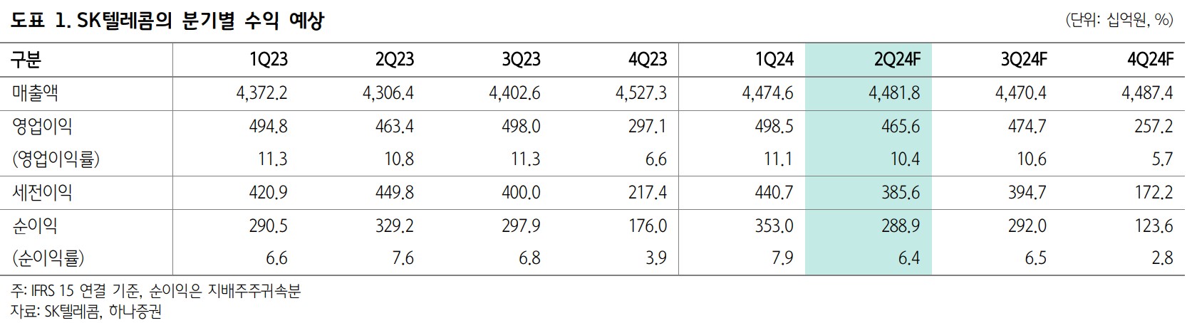 SK텔레콤은 안정적인 매출과 높은 배당 수익률로 투자자들에게 매력적인 종목입니다. 최근 지배구조 개편 이슈로 주가 상승이 기대되며, 2분기 실적도 양호할 것으로 예상됩니다. 높은 배당금과 안정적인 실적을 바탕으로 투자 매력도가 큽니다.