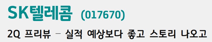 SK텔레톰은 최근 SK그룹사 차원으로 이루어지고 있는 지배구조 개편의 최대 수혜주임. SK하이닉스도 자회사로 가지고 있고 SK그룹에서 정말 중요한 캐시카우 역할도 하고 있고! 배당도 잘 줌. 저점에서 모아간다면 죽기 전까지 손해볼 주식은 아니라고 생각함. 본 글은 투자 권유글이 아님. 증권사 리포트를 바탕으로 작성됨.