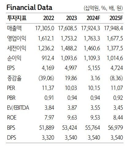 | 매출액 | 17,305.0 | 17,608.5 | 17,924.3 | 4,492.0 |