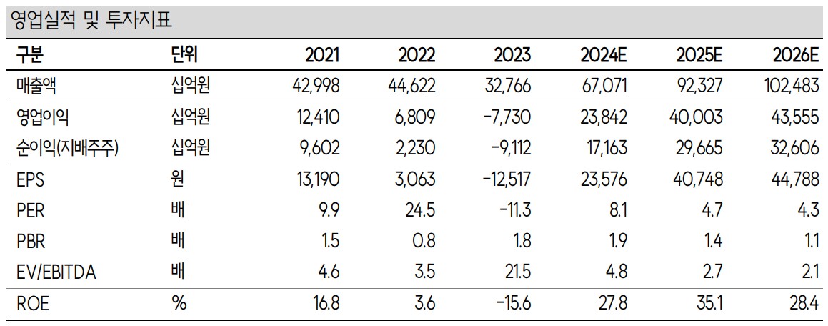 | 영업이익 | 12,410억 | 6,809억 | -7,730억 | 23,842억 |