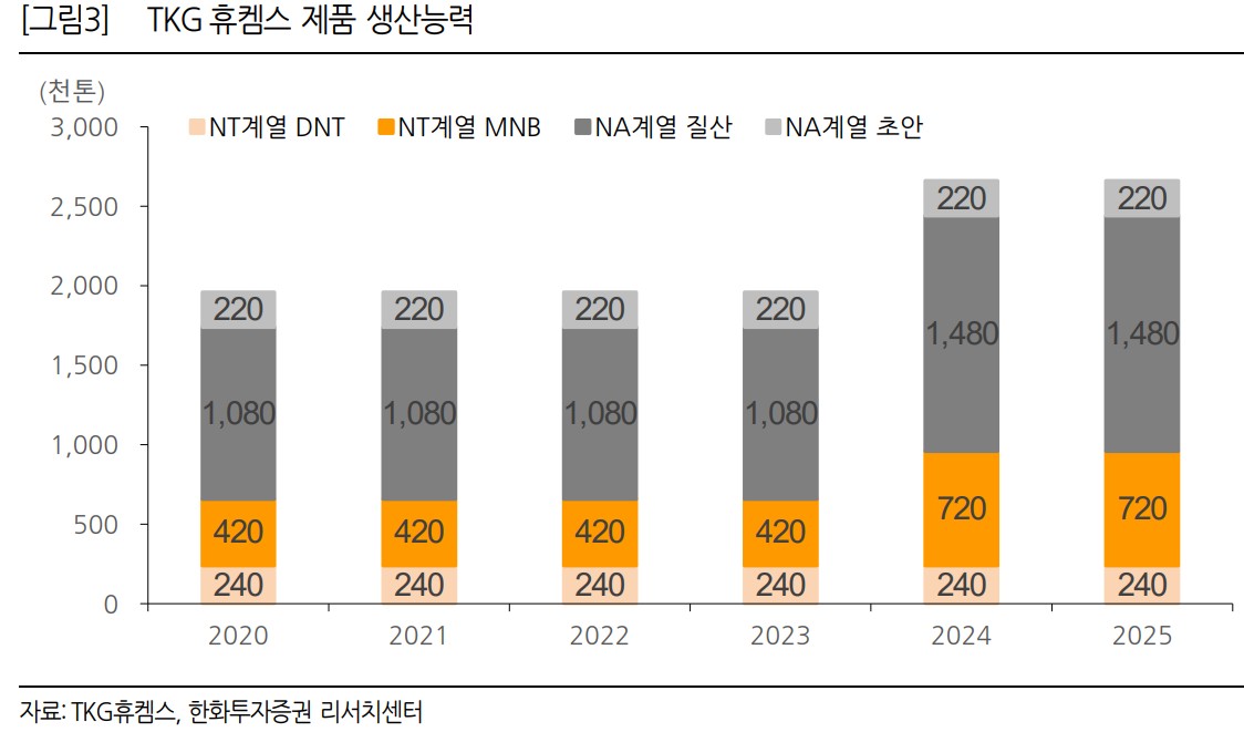 A. TKG휴켐스는 주로 질산, 초안, MNB 등을 생산합니다.