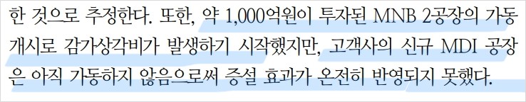 - MNB 증설로 인한 생산능력 증대