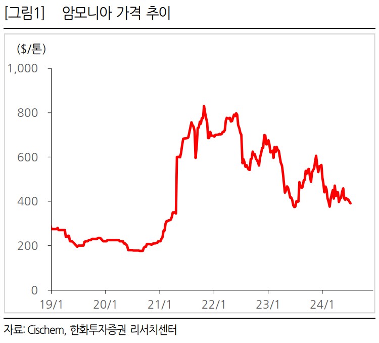- 암모니아 가격 하락으로 인한 수익성 감소