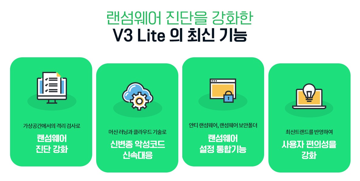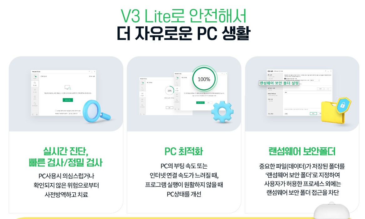 V3무료백신은 다양한 기능을 통해 시스템 보안을 강화합니다. 멀웨어 및 바이러스 탐지 기능을 통해 실시간으로 시스템을 보호할 수 있습니다. 또한, 사용자 친화적인 인터페이스를 통해 누구나 쉽게 사용할 수 있습니다. 불필요한 파일을 정리하는 최적화 기능도 제공하여 시스템 성능을 유지합니다. V3무료백신의 주요 기능은 다음과 같습니다.